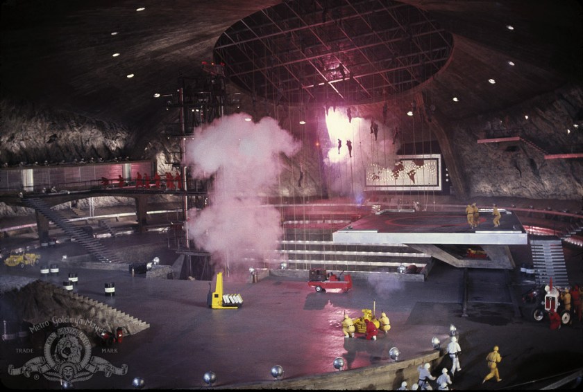 Instead, I would tend to watch this movie more often than any of the other Connery films of the series because there’s an exotic beauty to the Japanese setting and the influence on the John Barry score (naturally, I have more to say about that next week) that keeps drawing me back. Another thing about this movie that I love is that this film drops all pretense seen previously that this is realistic. By god, the movie opens with a scene in space in which SPECTRE steals an orbiting American craft followed by James Bond faking his death. It closes with a $1 Million set that is simulates SPECTRE’s secret volcano base where they plan to launch another spacecraft.
