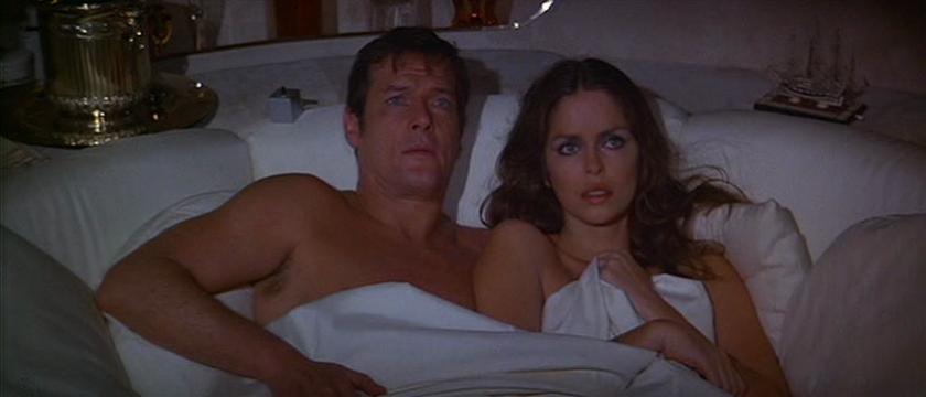 The other standout girl in the movie is former model turned actress and singer Caroline Munro. Now, I am well aware of Munro’s work from the scores of B-movies she made in the 70s and 80s. But she got her part as Stromberg’s pilot Naomi because Broccoli saw her ad campaign for liquor where she would be wearing various wet suits with a knife holstered on her hip. He brought her in, and decided that she had all the right attributes to be Naomi, and yes… Yes she does have all the right attributes. An interesting tidbit is that she had a very small role in 1967’s version of Casino Royale which is a bizarre spoof on the Bond series released by Columbia Pictures. The less said about that one, the better. Additionally, she was supposedly lined up to play Ursa in the first two Superman films, but turned it down to be in The Spy Who Loved Me. That’s the power of the Bond franchise.