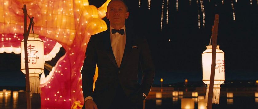 Deakins also knows how to shoot Bond in almost iconic ways. We first see Bond enter a scene out of focus and slowly walk to the forefront, zeroing in on Craig’s icy blue eyes. It’s great. It’s how we should see his Bond. He’s steely. When he enters the floating casino in Macau, there’s this wonderful shot of Bond framed perfectly with the floating paper lanterns and fireworks. There’s a color palette to this film that makes it look and feel unlike any other entry in the series or any movie that came out in 2012.