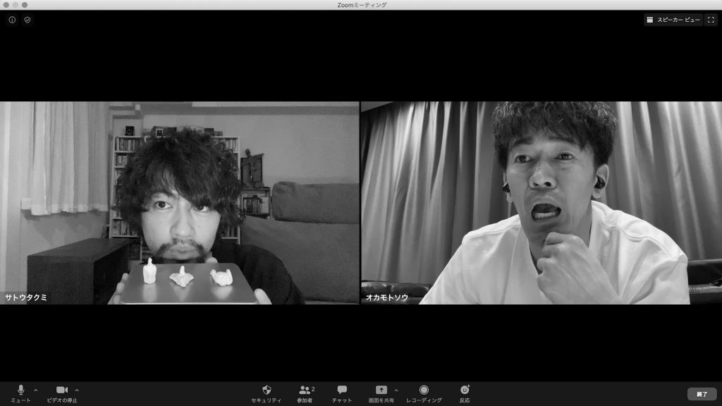 The 12 Day Tale is a little bit selfie and a little bit Zoom call. It’s about a man, Takumi, who decides to purchase what’s called a capsule monster (a concept that has roots in some kaiju media in Japan) and raise a monster to be a hero in the fight against COVID-19. Takumi is not a monster shepherd. He’s an actor, but there’s no jobs to go to right now. During his journey with the capsule monster, the teeny tiny, unassuming egg splits into three, hatches three creatures, and then it ultimately merges back into a single creature again.