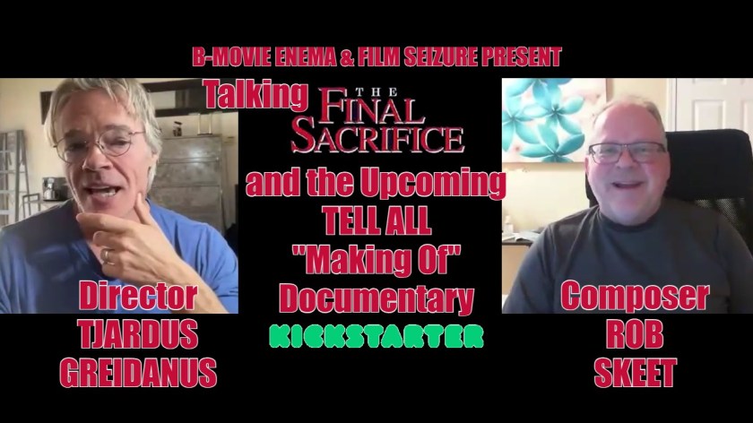 The Final Sacrifice is one of the all-time great Mystery Science Theater 3000 episodes. But little is known about the behind the scenes stories of the film, the thoughts on the MST3K episode, and the cultural impact of ROWSDOWER. Launching on Kickstarter on Thanksgiving Day, The Making of The Final Sacrifice promises clarity on some of the mystery around the movie and its history. Director Tjardus Greidanus and composer Rob Skeet sits down with B-Movie Enema and Film Seizure’s Geoff Arbuckle to talk about the movie, and the campaign.